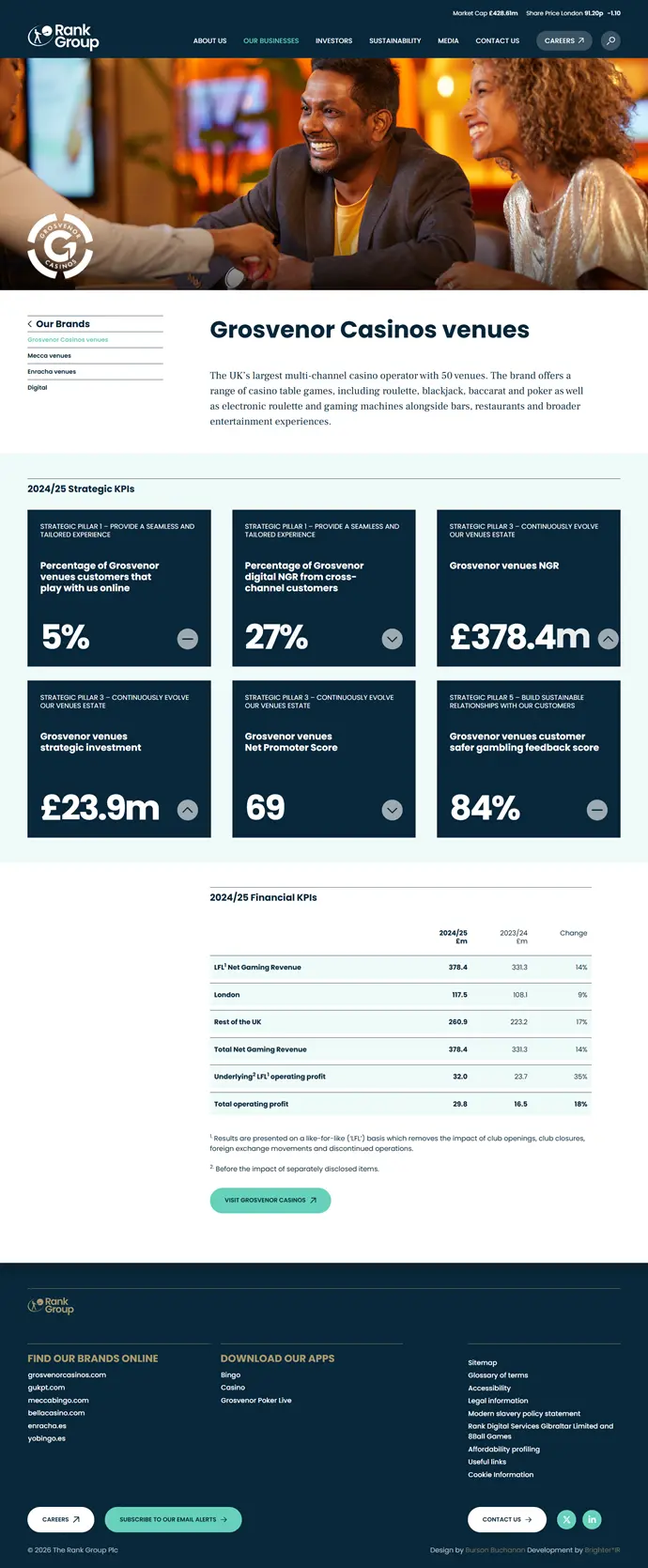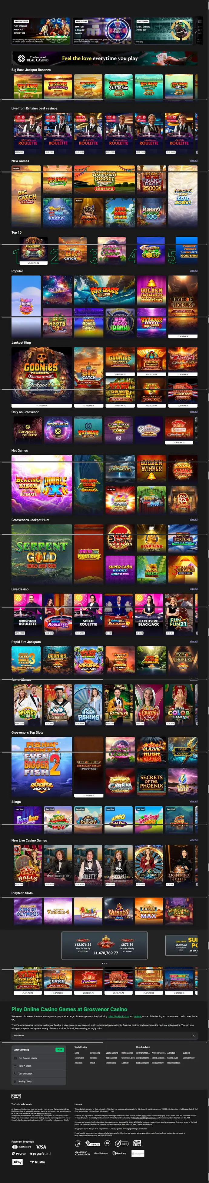 Interfaz de la página de inicio de Grosvenor Casinos