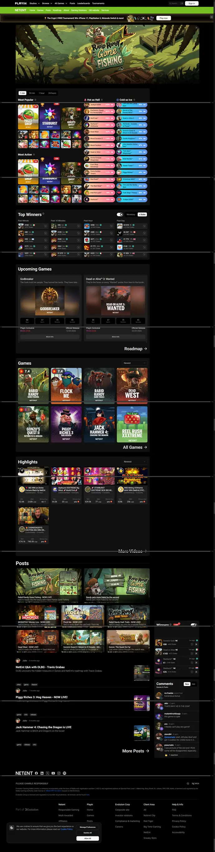 Interfaz del sitio de NetEnt