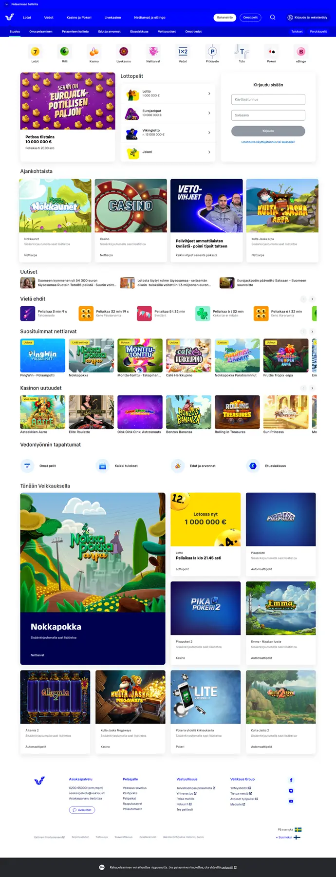 Interfaz del sitio oficial de Veikkaus (02 de marzo de 2026)