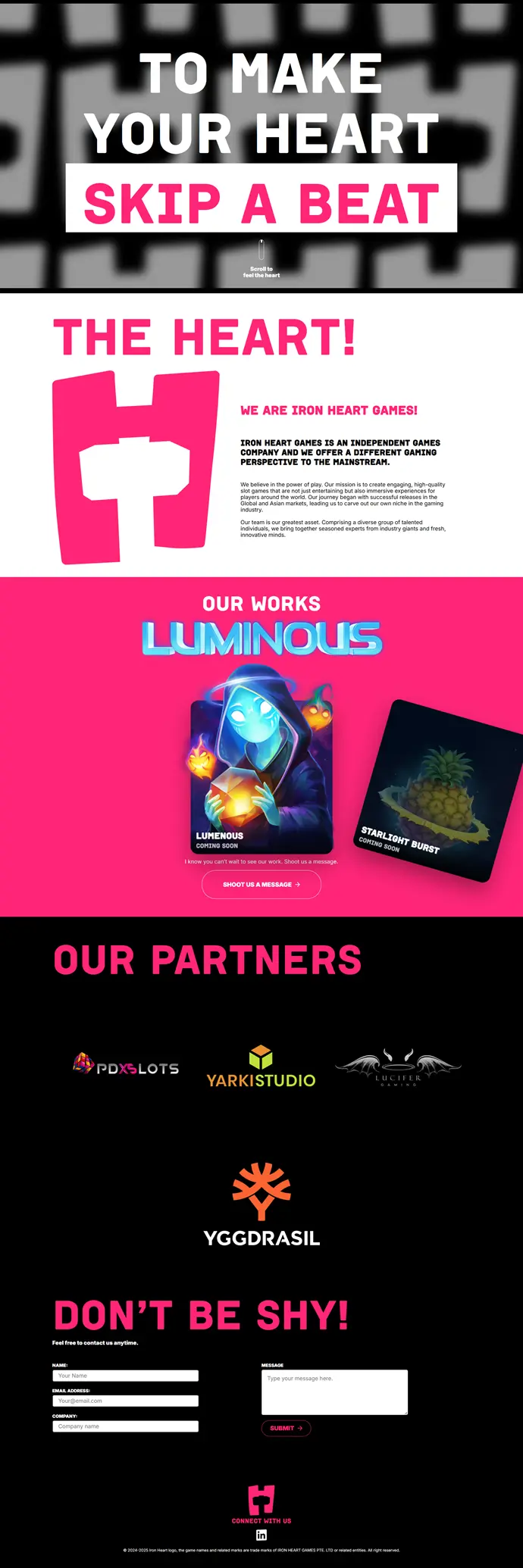 IronHeart Games se distingue por un enfoque centrado en el diseño matemático del gameplay, la volatilidad de los juegos y universos narrativos inspirados en el cine.