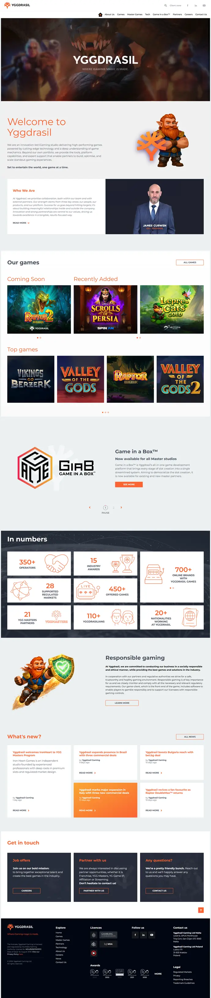 Página de inicio del sitio de Yggdrasil Gaming