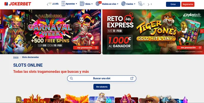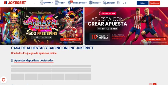 JOKERBET se presenta como una plataforma de entretenimiento online estructurada, que cubre todos los grandes universos de juego autorizados en España. Su oferta se basa en una segmentación clara entre apuestas, casino RNG, juegos en directo y juegos de cartas, evitando un catálogo desordenado y favoreciendo experiencias diferenciadas.