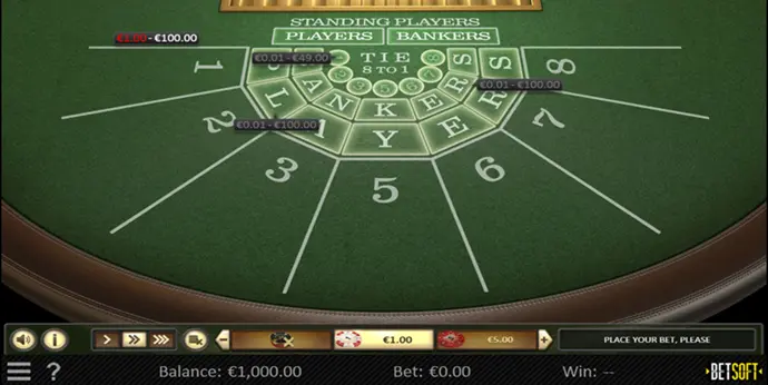 Baccarat clásico desarrollado por Betsoft Gaming, perteneciente a la familia de juegos de mesa del proveedor. Este título se sitúa junto a propuestas como Super 7 Blackjack (2013), Draw High Low (2013) y Pai Gow (2013). Todos fueron lanzados el mismo año y comparten una filosofía sobria, tradicional y muy fiel al casino clásico.