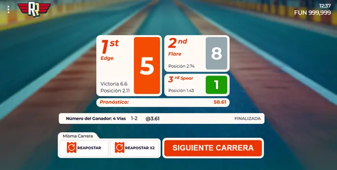 La apuesta Forecast da a Redline Rush una dimensión más precisa, ya que debe anticipar el orden exacto de los dos primeros en meta. En ese momento entra en una lectura más detallada de la carrera, siempre dentro de un marco claro y fácil de aprovechar en la demo.