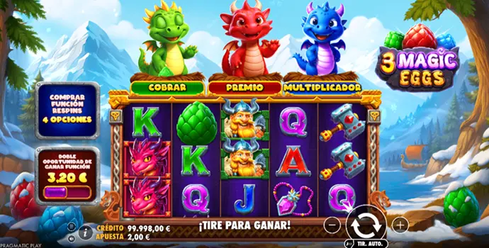 Porque 3 Magic Eggs no es un título que se limite a juntar mecánicas populares sin más. Les da una puesta en escena coherente y con personalidad. Los dragones, los colores y los huevos funcionan como un lenguaje visual claro. El jugador entiende lo que está viviendo. No es solo una sucesión de símbolos, sino una progresión que puede alargarse y sentirse como una historia.