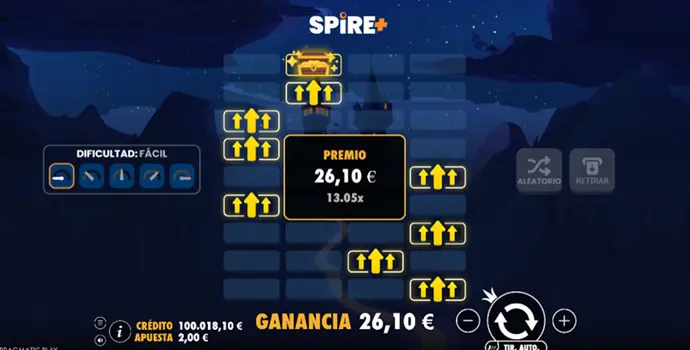 Spire+ no juega nunca con la ambigüedad. Desde el primer momento sabes cuántos win spots y lose spots hay en cada nivel, según el modo elegido. Esta claridad cambia de forma radical la relación con el juego, algo muy apreciado por los jugadores en España que buscan entender exactamente a qué se exponen.