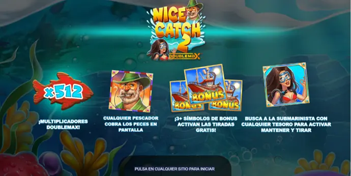 ¿Qué te parece sumergirte en el cautivador universo de Nice Catch 2 Doublemax™? Si tu respuesta es sí, entonces te invito a dejarte llevar por el suave vaivén de un barco, listo para zarpar en una increíble jornada de pesca. Imagina las olas danzando suavemente a tu alrededor mientras una brisa marina acaricia tu rostro. A lo lejos, un pescador experimentado, con un cigarrillo entre los dientes, ajusta meticulosamente sus líneas, mientras una intrépida buceadora se prepara para adentrarse en las profundidades del océano en busca de tesoros olvidados.